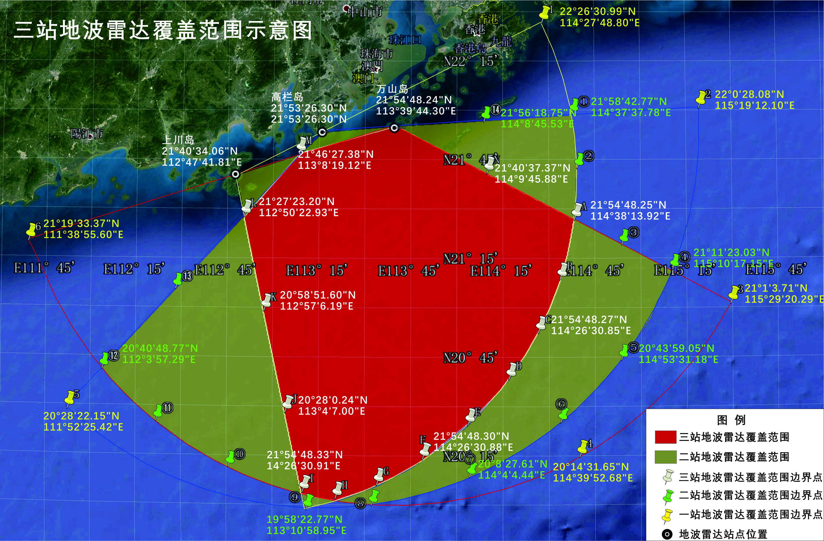 三站雷达组网所确定的试验靶场