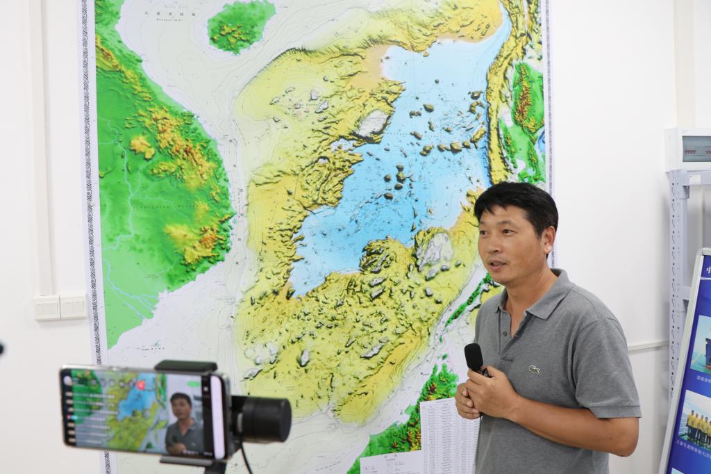 副院长陈刚教授耐心细致的为大家介绍了极地科考的装备与经历,解答了主持人关于各种海洋地形产生的原理等问题,并以区域的南海地形图为例,解释了在海洋勘测中如何用“五位一体”的勘测系统一体化采集数据最终形成三维的地形图。