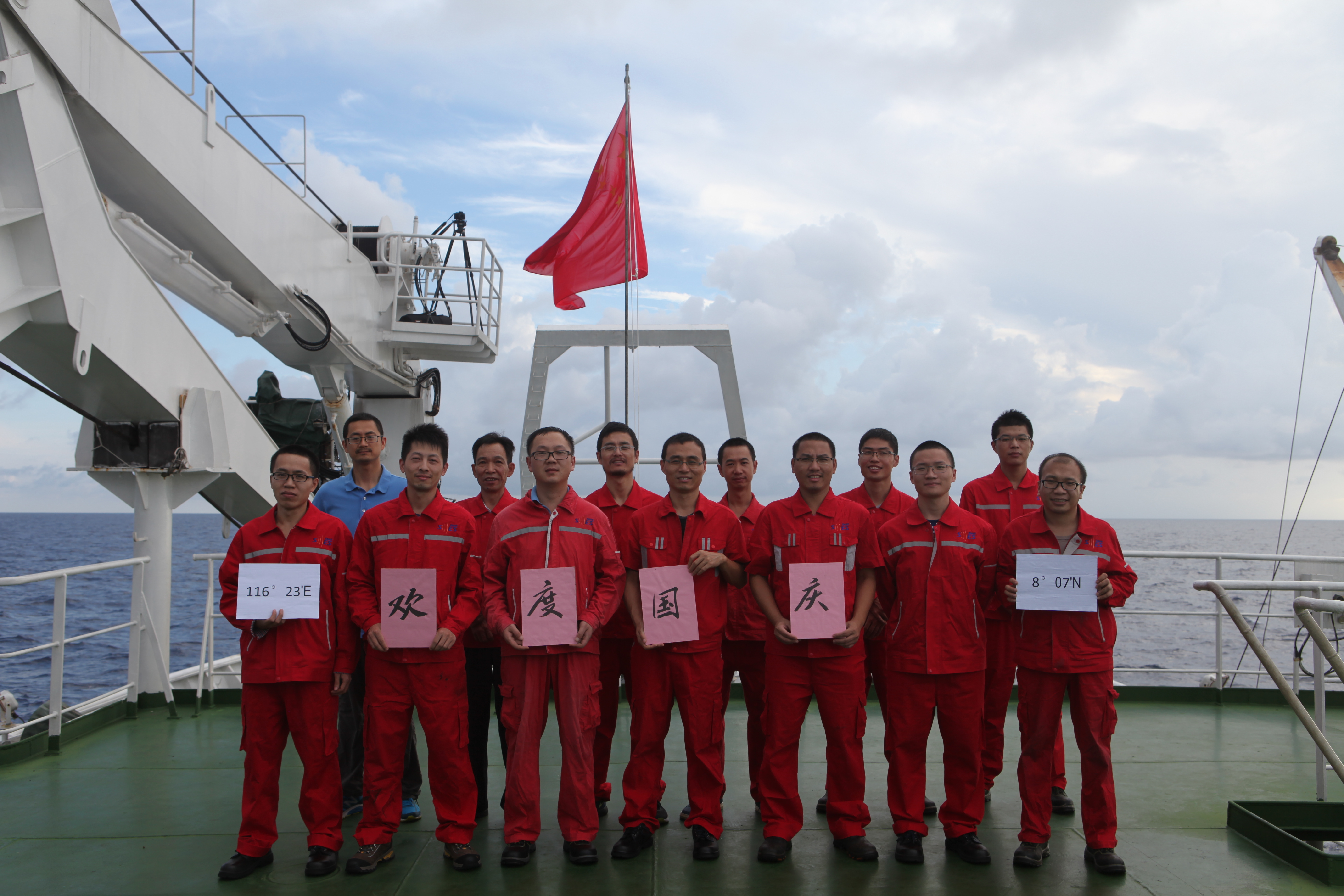 转眼之间我们就在船上迎来了国庆节,这应该是我目前在祖国最南端过的一个国庆了,想想自己接下来一个多月的时光都要奉献给美丽的南海,心中的自豪感油然而生。这天早上我们举行了隆重的升旗仪式,虽然没有三军仪仗队,但是我们还是十分认真的在准备:随着国歌的响起,两位升旗手缓缓地升起国旗,国旗在海风中飞舞着,似乎在诉说着我们国家60多年来的发展,激励我们继续为我们国家的海洋事业奉献自己的力量。