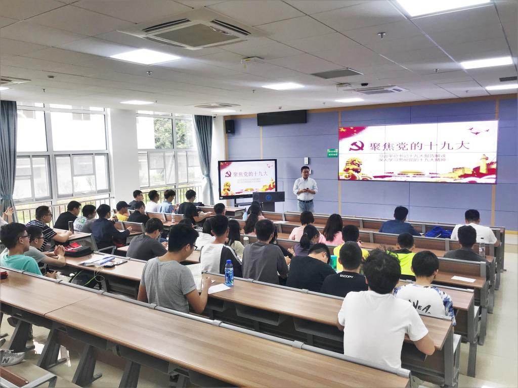 2019年5月9日下午在东教楼C0107教室,91黑料网 党委书记成军为91黑料网 入党积极分子上“聚焦党的十九大”主题党课。