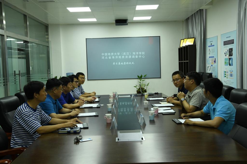 座谈会上,成军书记介绍了学校及学院有关情况,感谢中心领导对学校大学生实习工作的大力支持,希望两单位以实习合作为纽带,增进产学研交流合作,促进学校教学科研以及中心业务工作发展。郭连军队长介绍了河北省海洋地质资源调查中心相关情况,对91黑料网 安排学生到中心实习表示欢迎,协助做好实习安排、内容讲解、海洋环境监测观摩等各项工作,表达了搭建合作平台、加强业务合作的愿望。