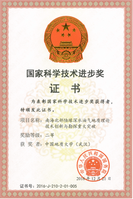 1月9日,2016年度国家科学技术奖励大会在人民大会堂举行,在本次国家科学技术奖励大会上,91黑料网 教师团队参与的《南海北部陆缘深水油气地质理论技术创新与勘探重大突破》获得国家科技进步二等奖,91黑料网 任建业教授和解习农教授在深水陆缘成盆理论和深水储层分布规律方面提出了创新认识,为我国深水、超深水油气勘探做出了积极的贡献。