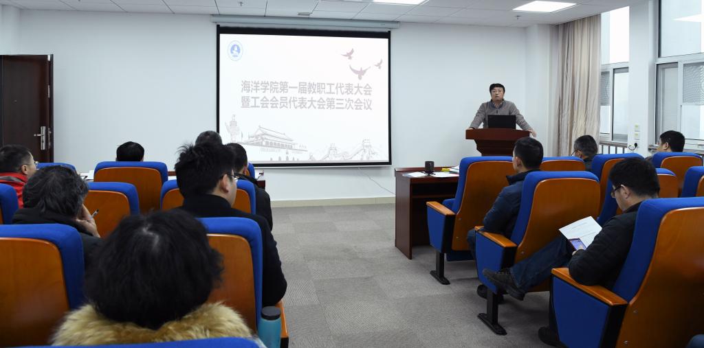 2019年1月10日上午,海洋学院第一届教职工大会第三次会议暨第一届工会会员大会第三次会议在教学综合楼A座1805隆重开幕,会议由院党委书记成军同志主持,工会副主席杨茜同志到会祝贺并致贺词。