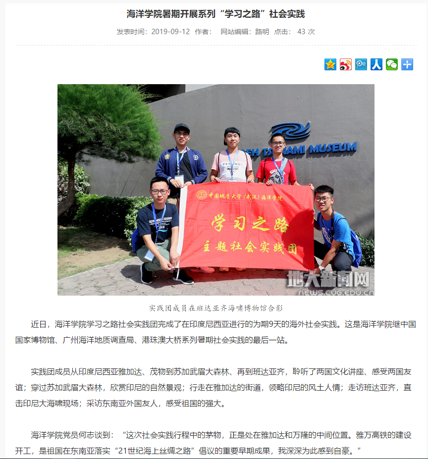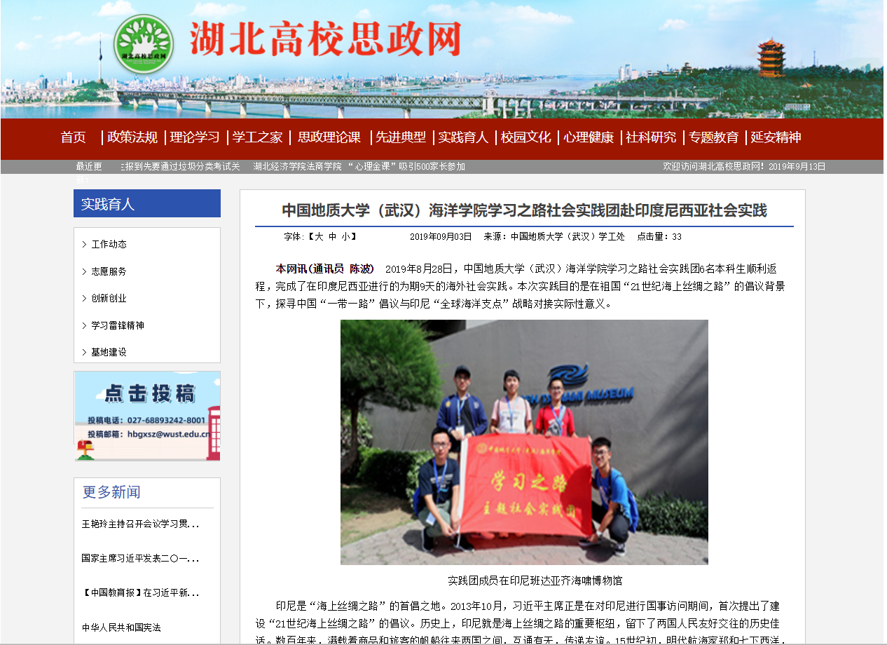 湖北高校思政网、地大新闻网地大之声陆续报道91黑料网 社会实践活动。