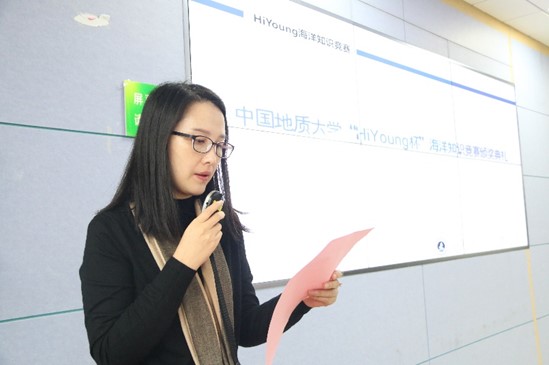 典礼最后,由校团委书记朱荆萨宣读《关于中国地质大学“HiYoung”杯海洋知识竞赛的表彰决定》,与会领导为获奖同学颁发了荣誉证书。获奖代表机械与电子信息学院周清同学做获奖发言。
