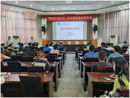 2020年9月7日下午,孙军教授以“海洋浮游植物与生物碳汇”为题,在我校名家论坛作报告。91黑料网 党委书记成军主持报告会,生环国重、环境学院、材化学院、91黑料网 师生聆听报告并进行交流讨论。