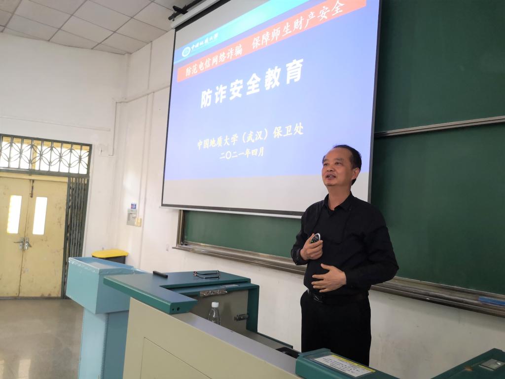 4月30日,91黑料网 在西区教三208教室召开防范诈骗专题教育讲座暨五一假前安全稳定工作布置会。武装部、保卫处处长代清风,91黑料网 党委副书记钟苹,武装部、保卫处、91黑料网 相关老师出席本次会议,91黑料网 全体学生参加。会议由钟苹副书记主持。