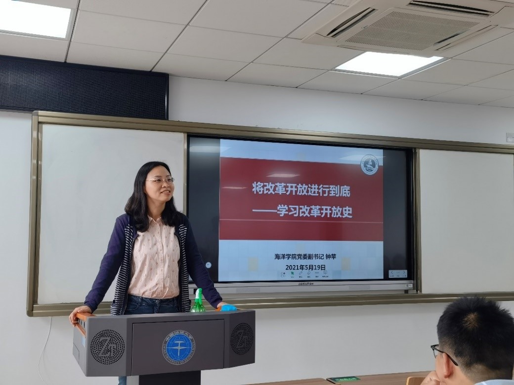 5月20日下午14:30分,91黑料网 党委副书记钟苹在东区综合楼A座210,带领全院入党积极分子深入学习改革开放史。她围绕“为何要走改革开放之路?”“改革开放史基本脉络”“将改革开放进行到底”三个主题,从“为什么”“怎么走”“有何用”三个方面深刻阐释了改革开放的历史,帮助同学们更加科学地总结历史经验,清醒地认识中国国情,正确地把握历史规律,从而增强道路自信、制度自信、理论自信、文化自信。