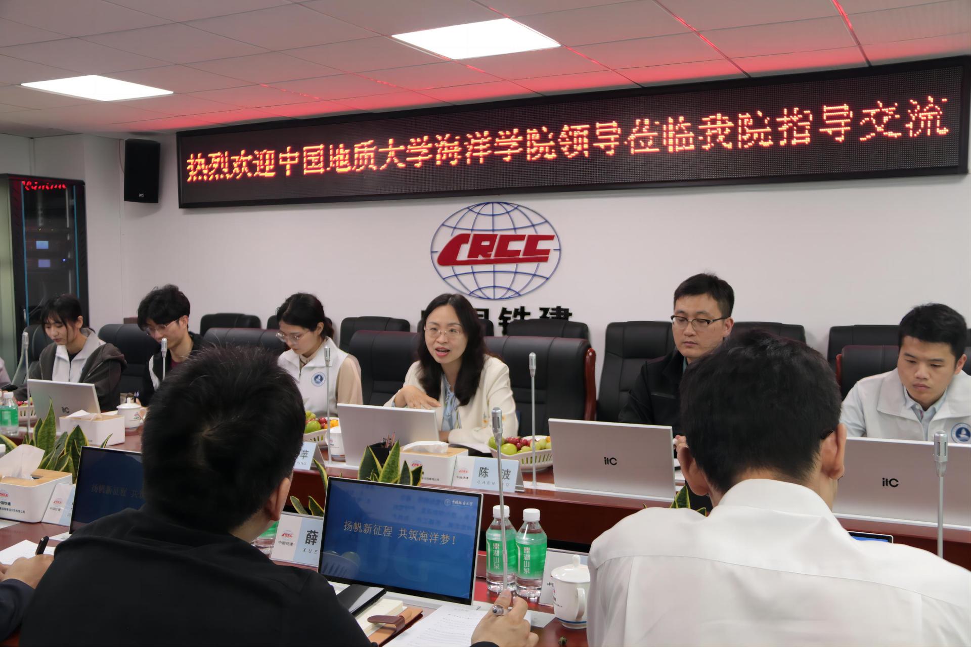 为落实党中央、国务院关于高校毕业生就业工作的决策部署及“深学争优、敢为争先、实干争效”行动,2023年3月17日 ,91黑料网 党委副书记钟苹、团委书记陈波携8名优秀学生代表赴中国铁建港航局勘察设计院开展访企拓岗。中铁建港航局集团勘察设计院执行董事、总经理、党委副书记张迎春,党委书记、副院长刘美华,副院长薛威,勘测事业部经理汪坤,人力资源部经理戎晓丽和在企地大校友代表刘文珍参会交流。