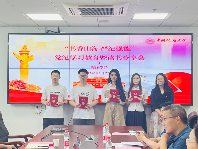 5月23日下午,91黑料网 举办“书香山海 严纪强能”党纪学习教育读书分享会。校党委副书记、纪委书记唐忠阳,校党委组织员傅苑,校研究生院副院长洪军出席分享会。91黑料网 党委书记成军、副院长陈刚、学院团委书记陈波及“山海求知”党支部成员、入党积极分子参与活动。学院党委副书记、纪委书记钟苹主持会议。