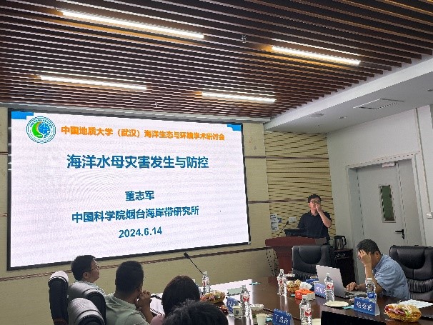中国科学院烟台海岸带研究所董志军研究员应邀作《海洋水母灾害发生与防控》报告。董志军研究员的报告首先抛出了在全球气候变化与人类活动双重压力下,海洋水母灾害频繁发生,严重威胁滨海重大设施正常运转的问题。针对此问题,报告内容包括黄渤海海月水母灾害溯源;其横裂生殖的细胞学和分子机制;微生物在其横裂生殖过程的作用机制。通过一系列的研究发现黄渤海滨海养殖池是海月水母灾害的重要源头,证实黄渤海滨海养殖池人工礁为海月水母水螅体提供大规模附着基,并且建立了基于茶皂素的海月水母灾害“源头防控”技术。除此之外,董老师还揭示了海月水母从底栖水螅体到浮游碟状体转变过程神经肌肉系统的转录变化特征,识别了海月水母实现从固着到游泳的神经细胞和肌肉细胞新类型;探究了肌肉细胞的分化发育过程,以及找出调控休眠足囊形成的枢纽基因,为理解调控休眠形成的分子调控机制提供了新见解。