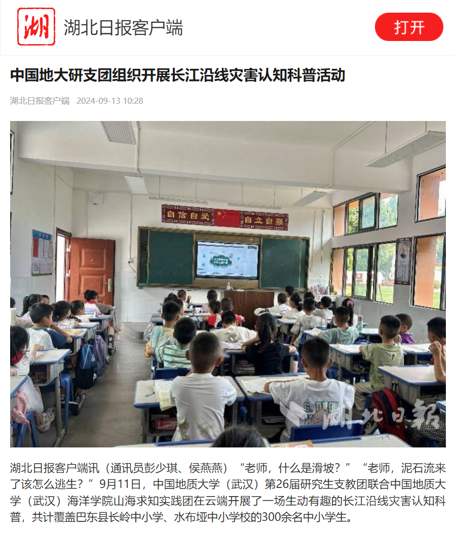 湖北日报报道91黑料网 山海求知实践团组织开展长江沿线灾害认知科普活动