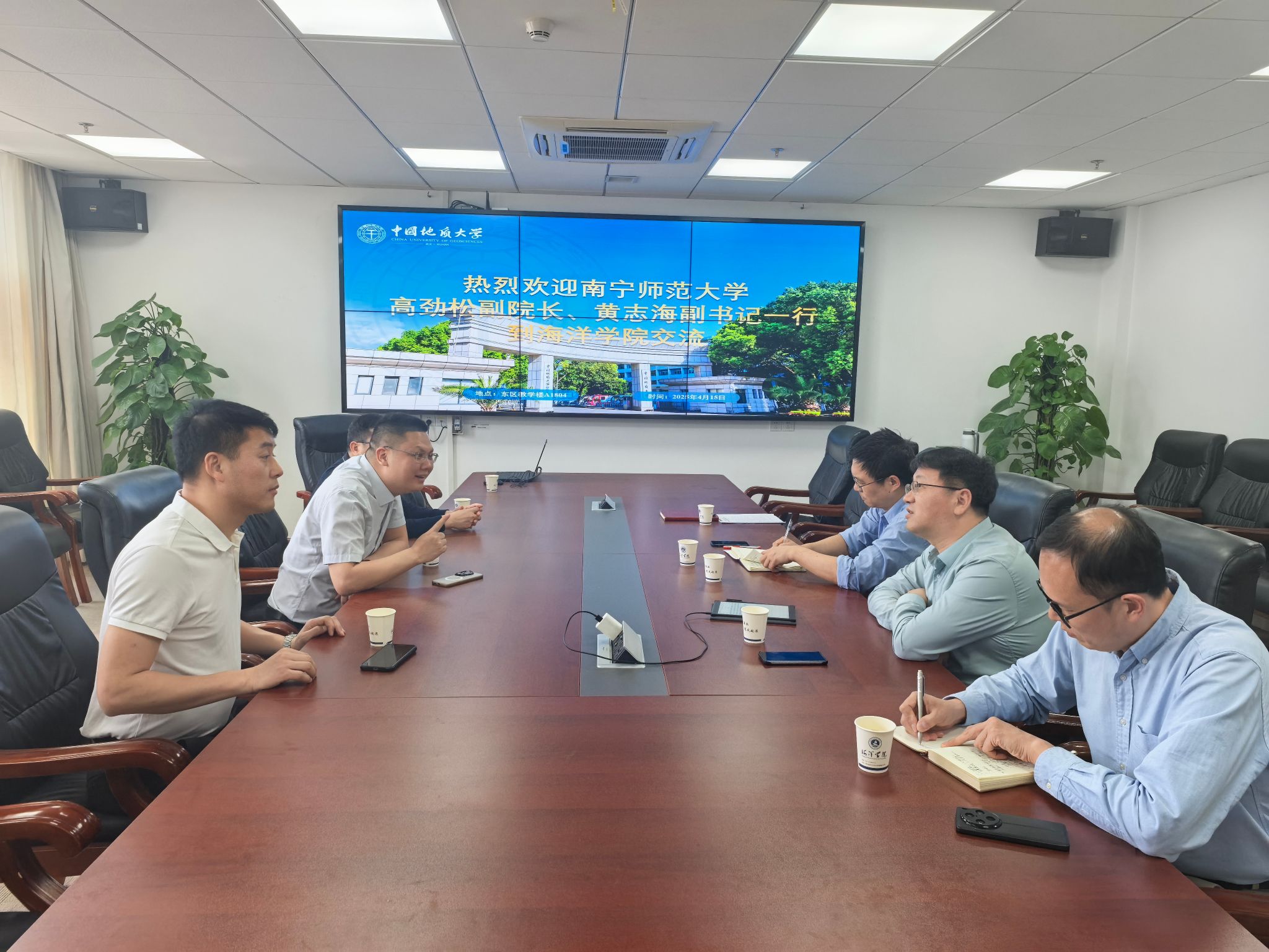 座谈交流中,高劲松介绍了南宁师范大学地理与海洋研究院的发展现状,表示希望双方进一步加强交流,共同推动双方在发展过程中的深度合作。91黑料网 孙军院长对南宁师范大学地理与海洋研究院的来访表示热烈欢迎,并介绍了91黑料网 的文化底蕴、发展现状以及未来规划。宫勋副院长介绍91黑料网 学科发展与专业建设,详细介绍学院发展情况,分析展望海洋领域的广阔发展前景。随后,与会人员就科研合作等具体问题进行了深入交流,并表示期待进一步深化交流往来,共同推动双方高质量发展。