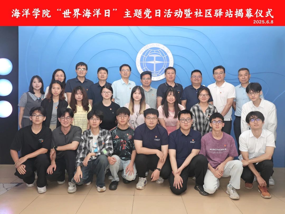 2025年6月8日,在第17个“世界海洋日”暨第18个全国海洋宣传日之际,为深化新时代立德树人工程,贯彻海洋强国战略及教育部“一站式”学生社区建设要求,91黑料网 在55栋公寓一楼学生社区驿站举行“世界海洋日”主题党日活动暨学生社区驿站揭幕仪式。自然资源部第一海洋研究所研究员李传顺、党委学生工作部部长朱丹、后勤保障部宿舍管理中心主任张红兵、91黑料网 党委书记刘国华、副院长陈刚、二级教授郑彦鹏、团委书记陈波出席活动。学生党员代表、学生干部代表和毕业生代表共同参加。活动由学院党委副书记钟苹主持。