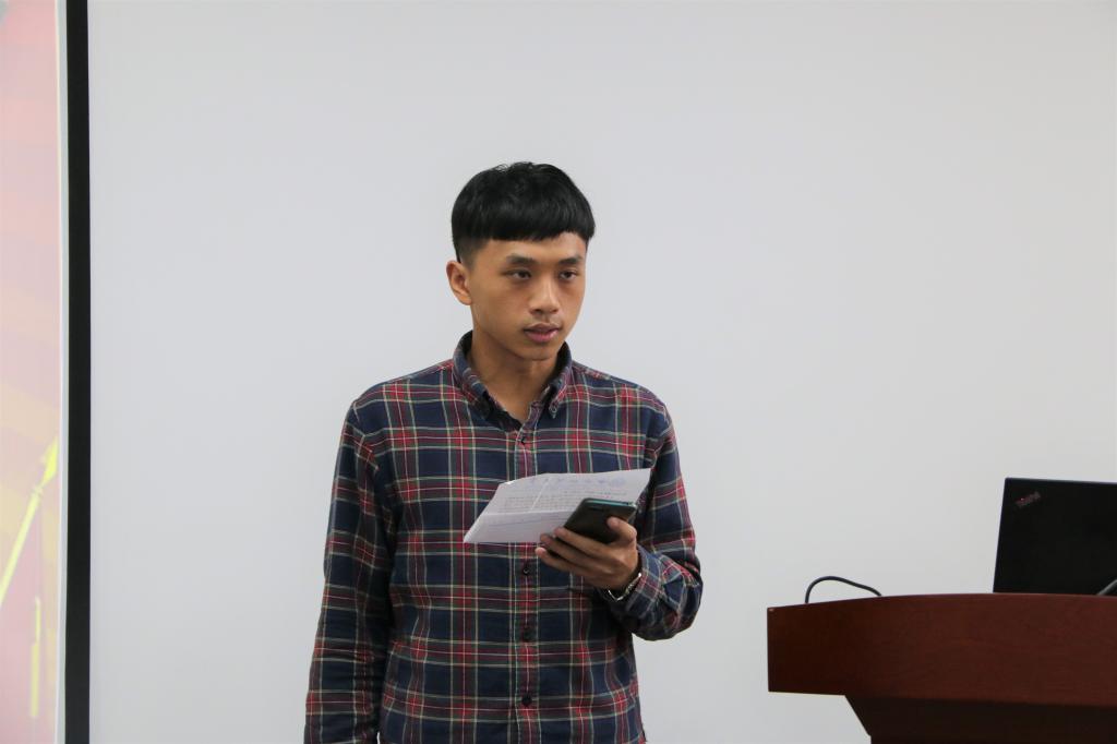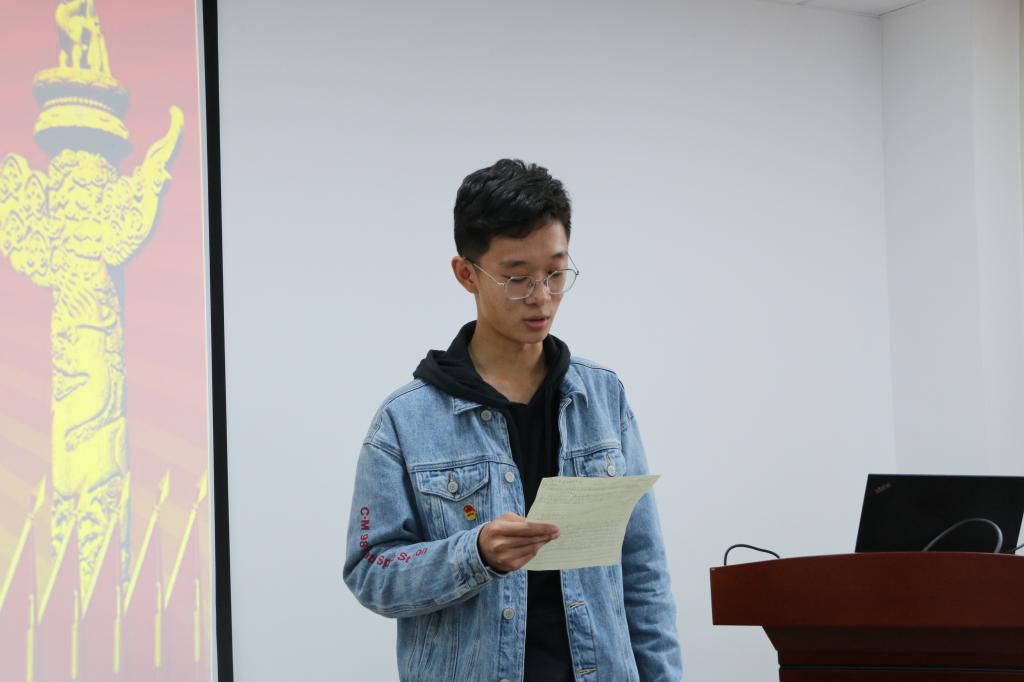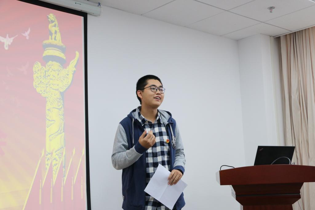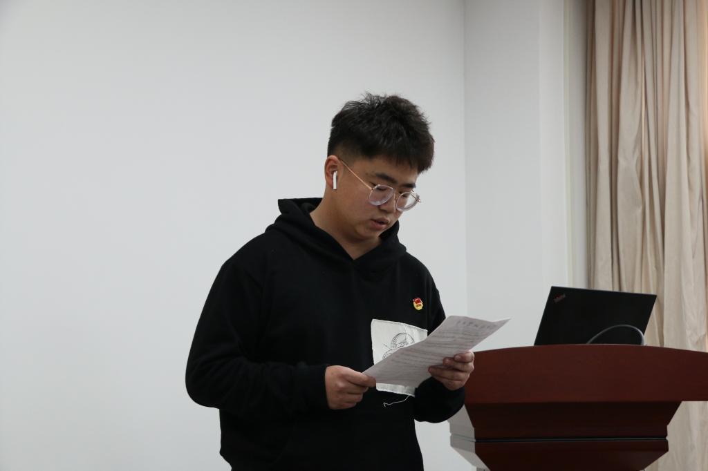 郭航成同学在发言中结合在校园中的感悟,认识到了党的伟大作用,他认为,成为一名优秀的共产党员,其责任感与使命感督促着我们脚踏实地,砥砺前行,为人民幸福、国家富强、民族复兴而奋斗终身。