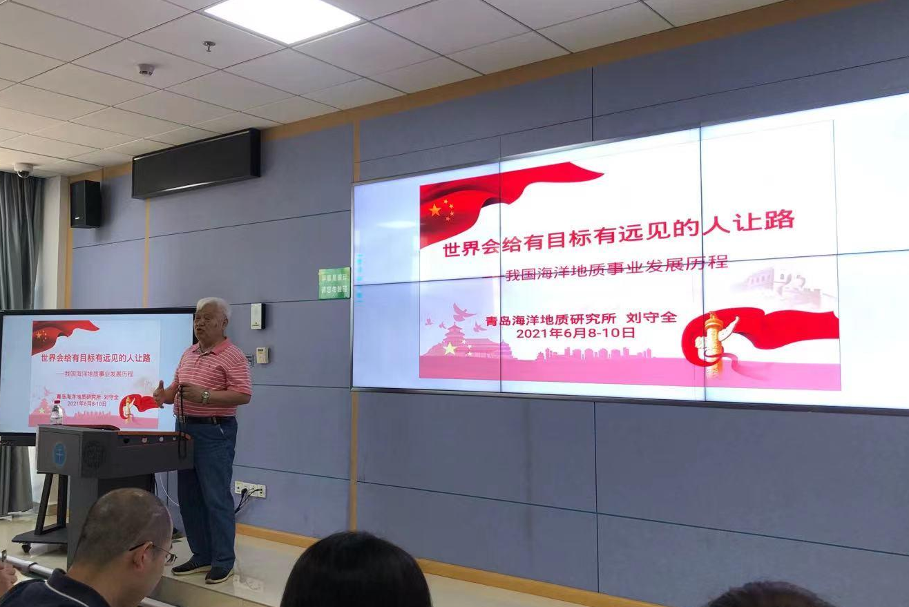 (通讯员:陈波 易立)2021年6月8日是第十三个世界海洋日暨全国海洋宣传日。当天上午10:00,青岛海洋地质研究所原所长刘守全研究员为91黑料网 全体师生讲了一堂题为《历史会给有目标有远见的人让路——我国海洋地质事业的发展历程》的生动党课。
