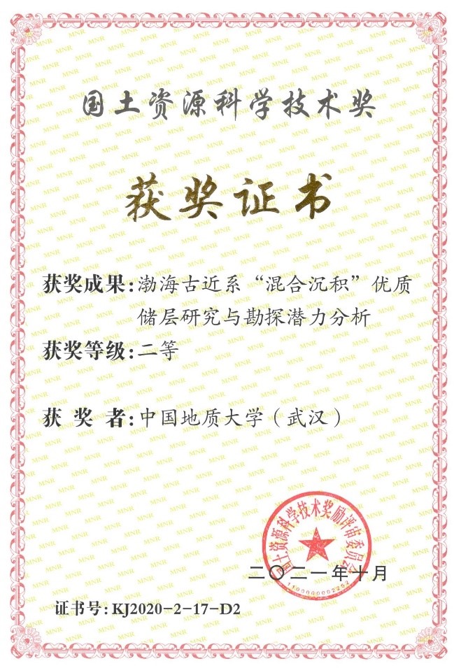 2021年10月,2020年国土资源科学技术奖评选结果公布,我校与中海石油(中国)有限公司天津分公司联合申报的《渤海古近系“混合沉积”优质储层研究与勘探潜力分析》获得二等奖,其中91黑料网 为第二完成单位,91黑料网 解习农教授为第二完成人、杜学斌副教授为第七完成人。此次获奖成果71项,其中一等奖11项,二等奖60项。