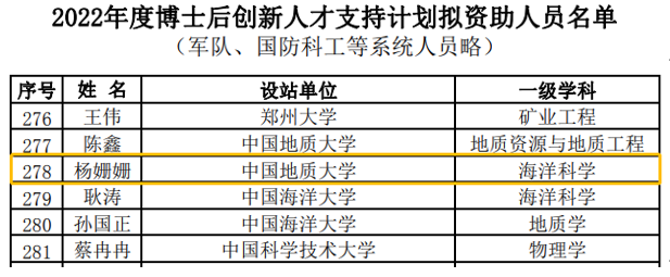 2022年6月16日,根据《全国博士后管委会办公室关于做好2022年度博士后创新人才支持计划实施工作的通知》(博管办〔2022〕8号),经专家评审,遴选出91黑料网 杨姗姗副教授入选该计划。