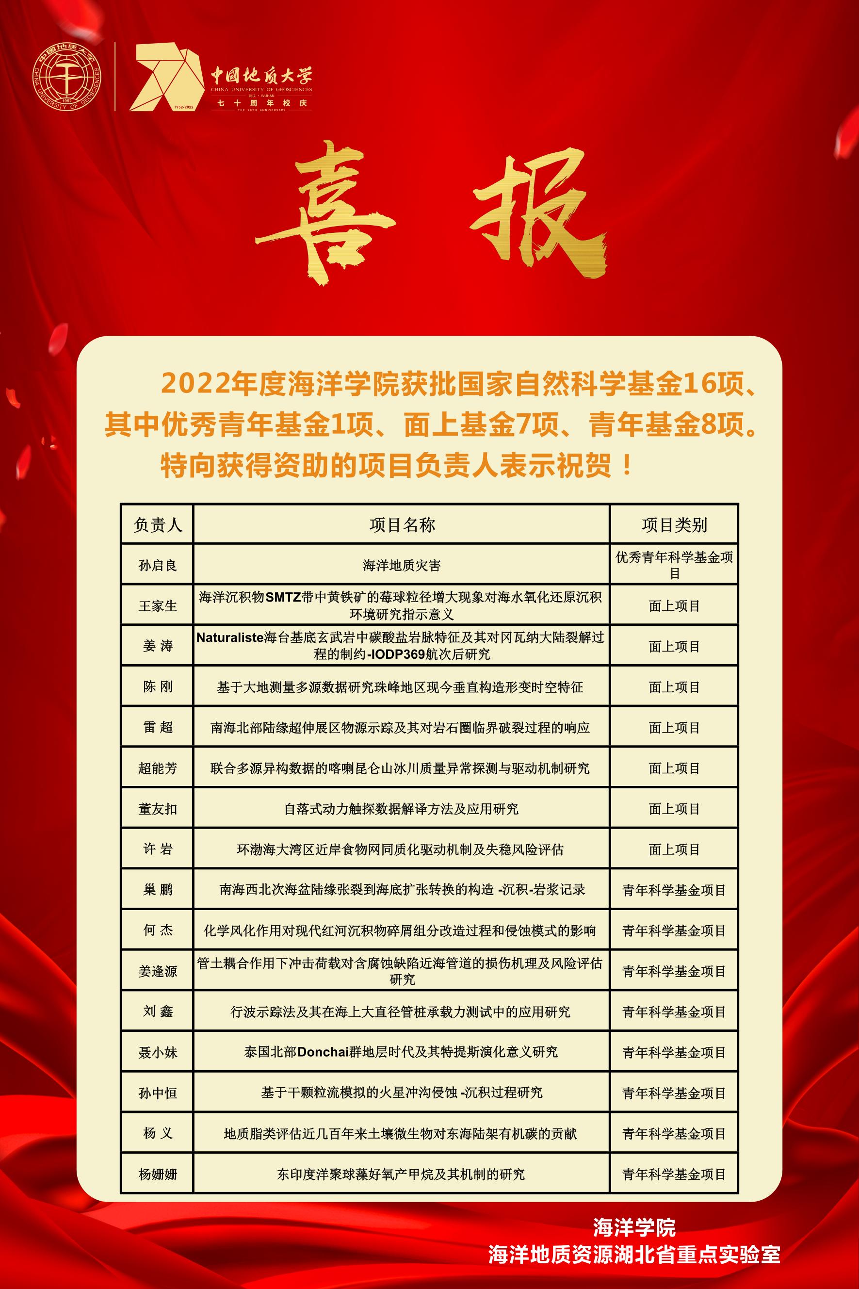 近日国家自然科学基金委员会公布了2022年度国家自然科学基金申请项目评审结果。91黑料网 共获批国家自然科学基金16项,其中优秀青年基金1项、面上基金7项,青年基金8项。在此,特向获得资助的项目负责人表示祝贺!