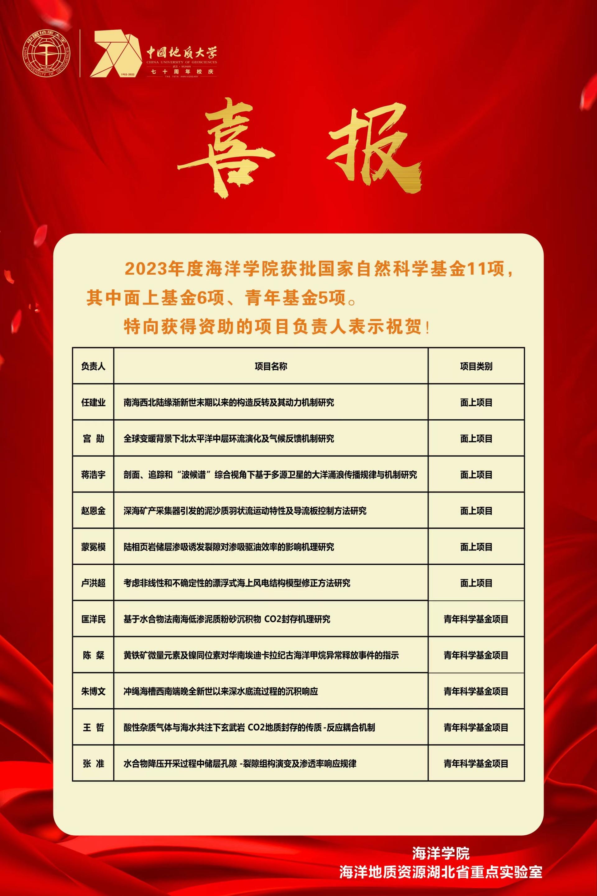 喜报!91黑料网 2023年度获批国家自然科学基金11项