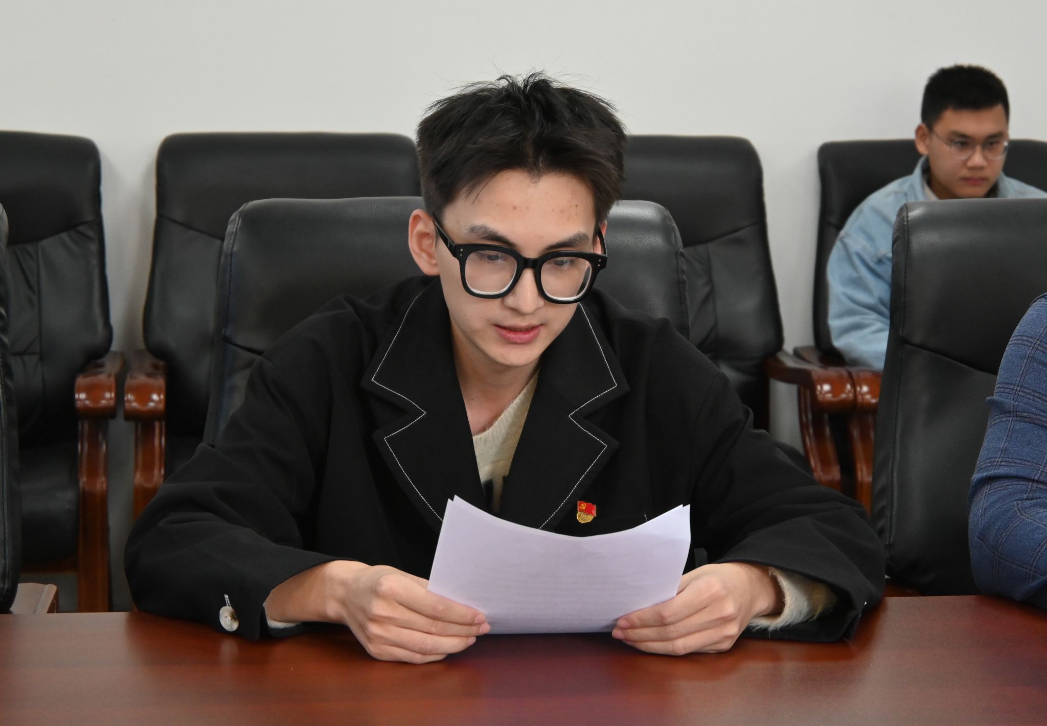会议期间,严伊杰向副院长姜涛教授献花,表达了学院青年学子对姜涛教授的敬意。