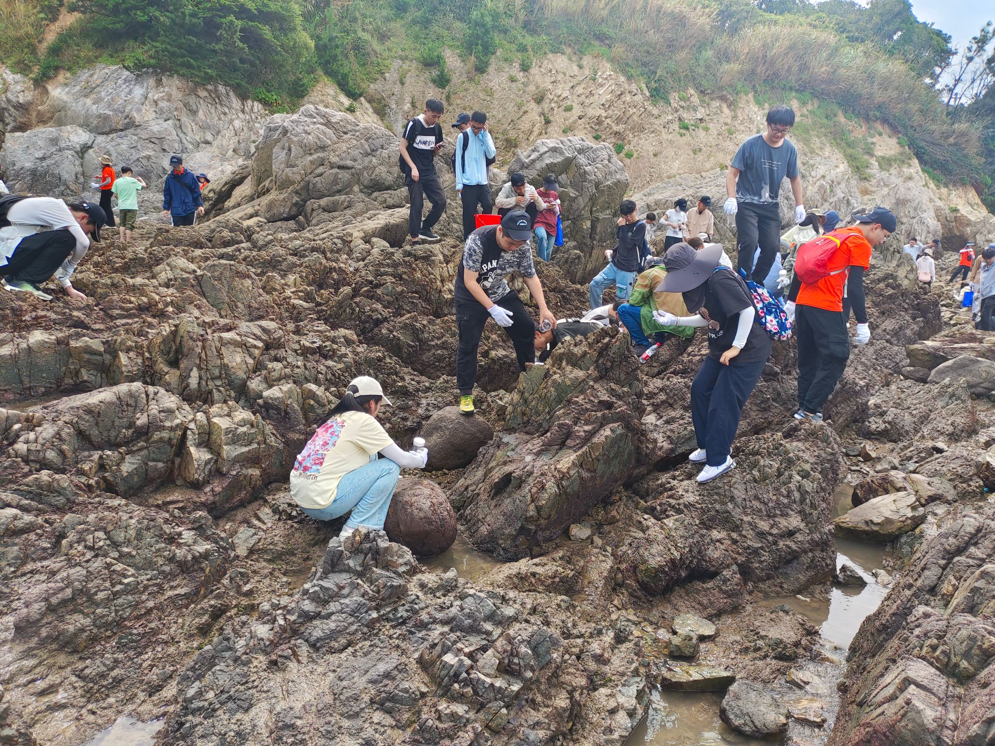 本次实习将围绕海洋生物与生态海上综合调查、潮间带海洋生物调查和海岸带地质调查三个模块开展实习工作。学生们将登上“浙渔科2号”科考船,学习温盐深采水系统(CTD)、声学多普勒流速剖面仪(ADCP)、多参数水质仪等海洋调查设备的使用方法,掌握海洋水文、海洋化学和浮游生物调查的基本方法;前往桃花岛等地开展潮间带泥相、岩相和沙相调查,学习潮间带定量定性调查、样品采集、物种鉴定等方法;在朱家尖岛开展海岸带地质调查;参观浙海大海洋生物博物馆、舟山市博物馆和浙江大学海洋学等博物馆与科研院所。