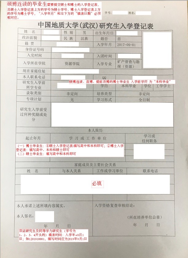 核对相关内容,确认无误后本人签字。请大家在《研究生入学登记表》上签字时请注意,签字时间应和表上的“入学日期”显示的时间一致,详见附件。 学生导出:培养管理—学期注册信息管理—导出《研究生入学登记表》 |