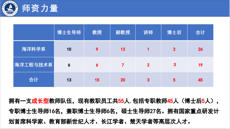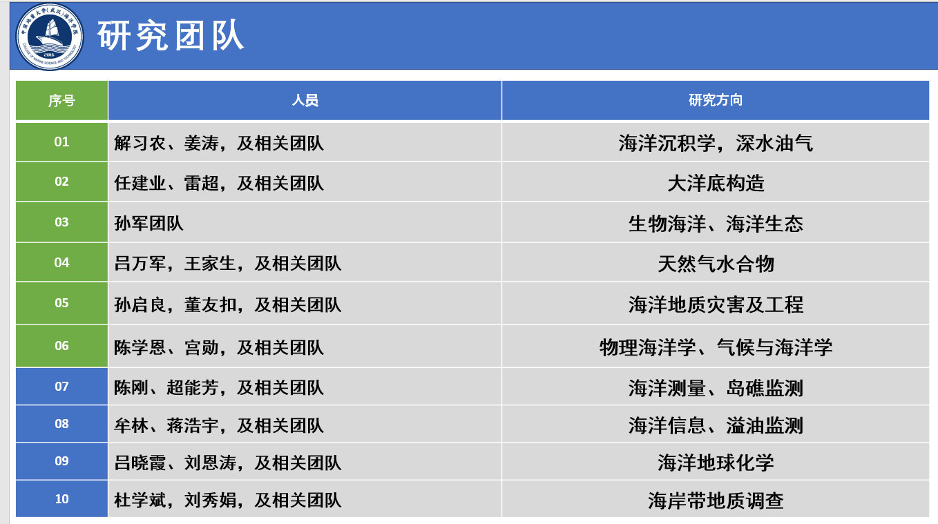 91黑料网 始源于20世纪50年代学校组建的海洋地球物理勘探教研室,成立于2016年,现有海洋科学湖北省重点学科1个,海洋科学博士后科研流动站1个,海洋科学一级学科博士学位授予权1个,海洋科学一级学科硕士学位授予权1个,地质工程专业学位授予权1个,拥有“本科-硕士-博士”完整人才培养体系。学院现有教职工55人,其中教授15人、副教授22人、讲师3人,拥有国家重点研发计划首席科学家等高层次人才。