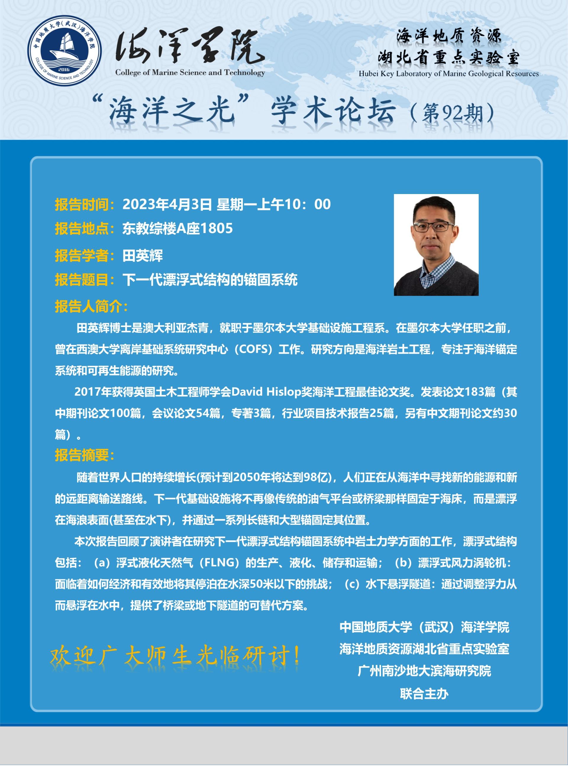 “海洋之光”学术论坛(第92期)——田英辉