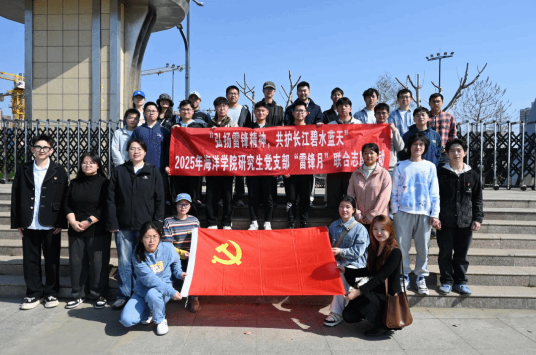 白勋霆(海洋构造与沉积环境研究生党支部书记):在三月和煦的春风里,我与支部同志共赴武昌江滩,以志愿服务践行新时代雷锋精神。清理滩涂垃圾时,俯身拾起每一个瓶子、每一片塑料,汗水浸湿的不仅是手套,更是党员的责任担当。目睹江鸥掠过清波,孩童在洁净堤岸嬉戏,我深切体会到"绿水青山就是金山银山"的深刻内涵。这场生态守护行动,既是对雷锋精神的时代诠释,更是共产党员守护母亲河的生动实践。我们将继续以红色初心守护碧水长流,让志愿服务的薪火在长江之畔生生不息。