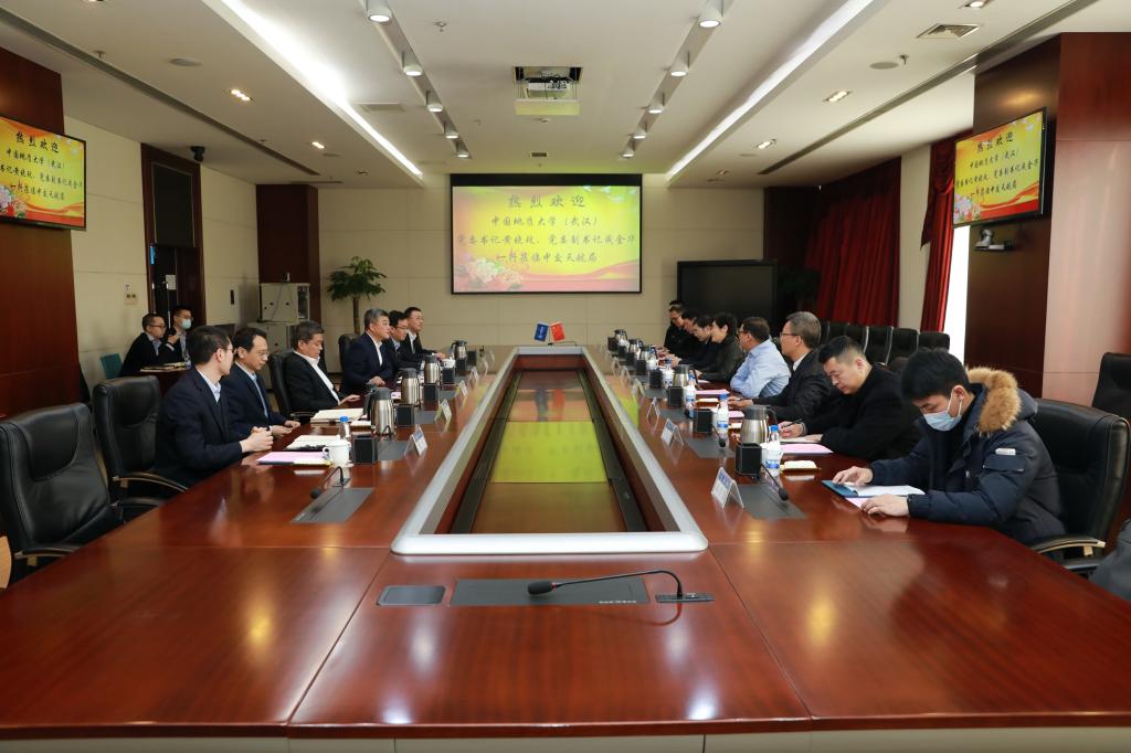 钟文炜董事长热烈欢迎黄晓玫书记一行来访,介绍了天航局百年发展历史、装备国产化、企业转型发展情况。对地大校友在天航局建设发展中的贡献给予高度评价,同时与学校在科技创新、产学研共建、学生实习实践和毕业生招聘等方面的合作展望。