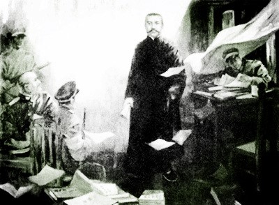 他生于1889年,1913年东渡日本,就读于东京早稻田大学,并在那里开始接触马克思主义学说。他是中国最早的马克思主义传播者。1916年回国后,他积极投身新文化运动,宣传民主、科学精神。李大钊“崇信共产主义”,经常“知有主义不知有家”。他在担任北大图书馆主任、教授期间,每月薪水超过200大洋。但他毅然将收入的2/3用于革命事业,剩下少部分用以资助困难学生和穷苦百姓。1917年俄国十月革命的胜利,极大触动了黑暗中国的一批警醒者,李大钊就是其中之一。历史将记住这个喜欢留两撇黑胡子,戴一副圆框眼镜的中年人,他宛如一位撞钟人,撞响了中国共产主义运动黎明的晨钟。五四运动前后,李大钊就直接参与了筹备创建中国的共产主义组织工作, "中国共产党"这个名称就出自他的笔下。通过大力宣传马克思主义,在中国大地播撒真理的“火种”,他不断的努力与探索,为中国革命树起了马克思主义的思想旗帜。
